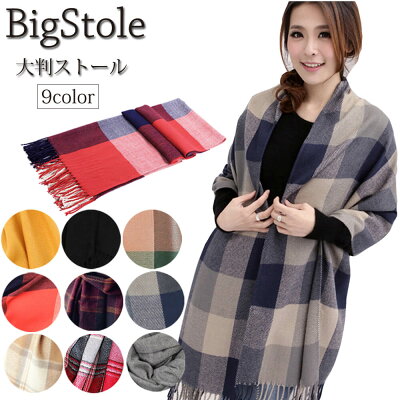 大判ストール レディース メンズ 厚手 200×60cm チェック マフラー ひざ掛け ブランケット ショール 暖かい お買い得 無地 かわいい おしゃれ 秋冬 人気