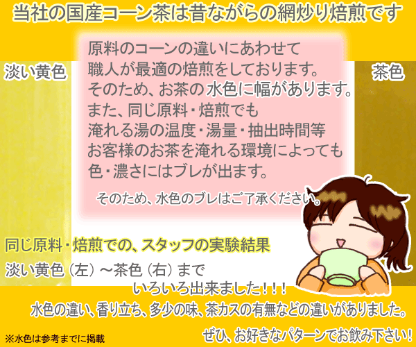 国産100%のとうもろこしを原料にしたコーン茶です。