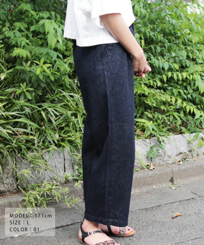 ワイドなシルエットとストレッチの効いた柔らかいデニム生地で 履き心地抜群。